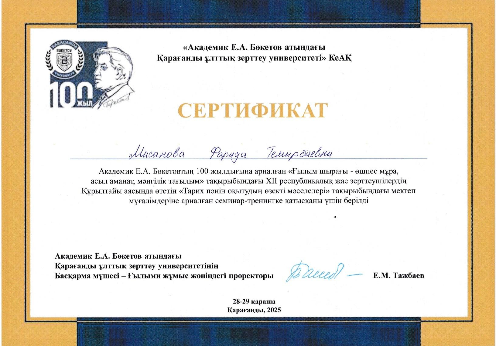 «Академик Е.А. Бөкетов атындағы Қарағанды Ұлттық университеті» КеАҚ 28.11.2025 жылы Ұлы бабамыз Евней Арыстанұлы Бөкетовтің 100-жылдығына арналаған «Ғылым шырағы-өшпес мұра, асы…