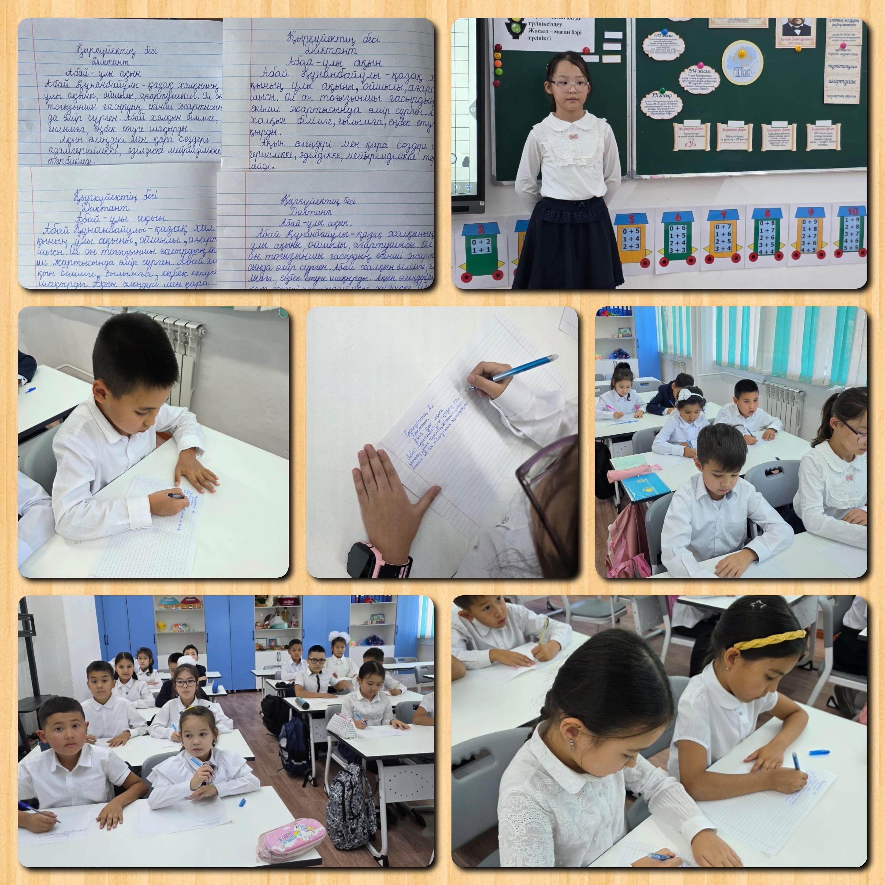 5 қыркүйекте Тіл мерекесі аясында ұлы қазақ ақыны Абай Құнанбайұлының 180 жылдығына орай 3"А" сынып оқушылары "Абай - ұлы ақын" атты диктант жазды.