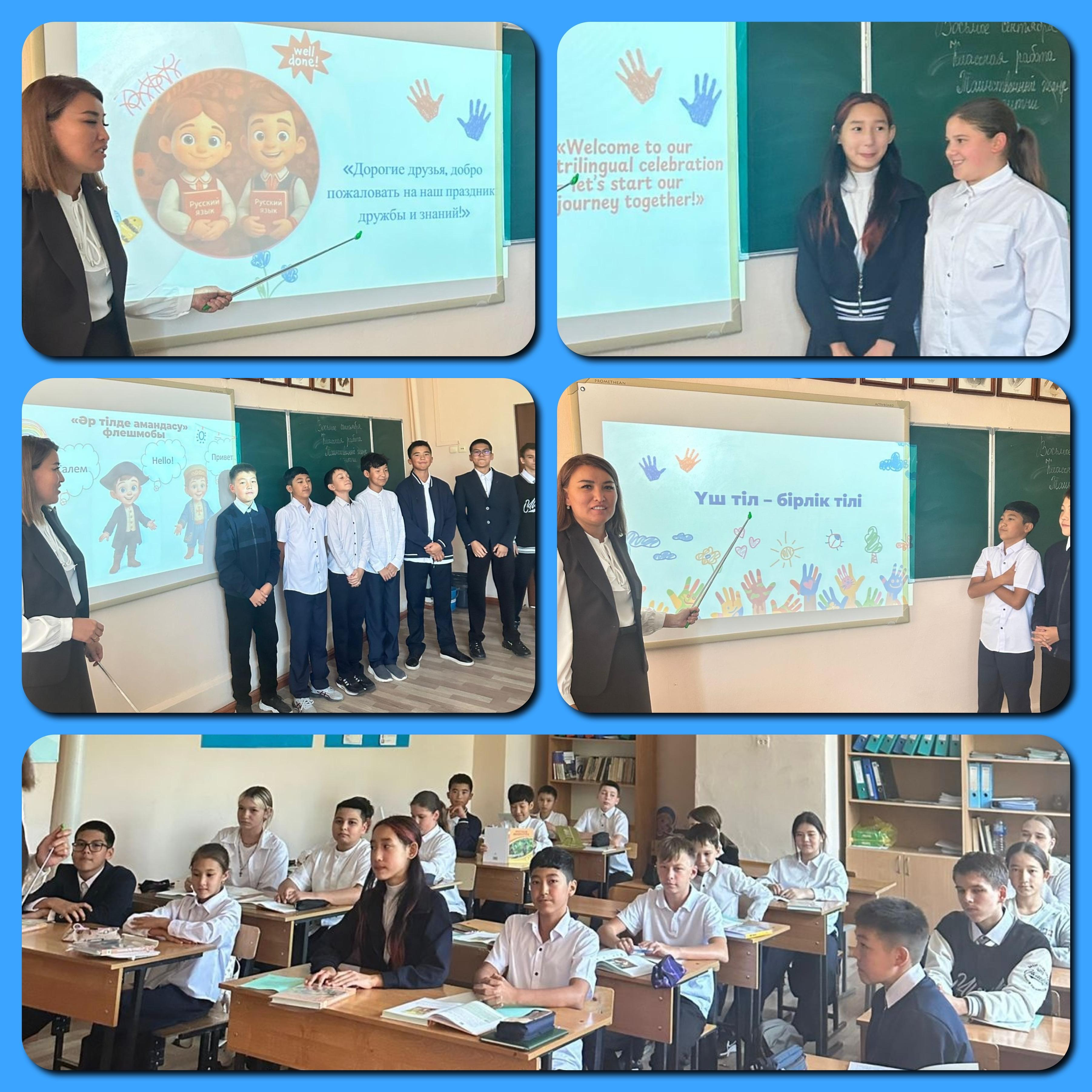 5 қыркүйек - Қазақстан халқының тілдері күніне орай, 7 сынып оқушыларымен “Үш тіл - бірлік тілі” атты викторина өткізілді.