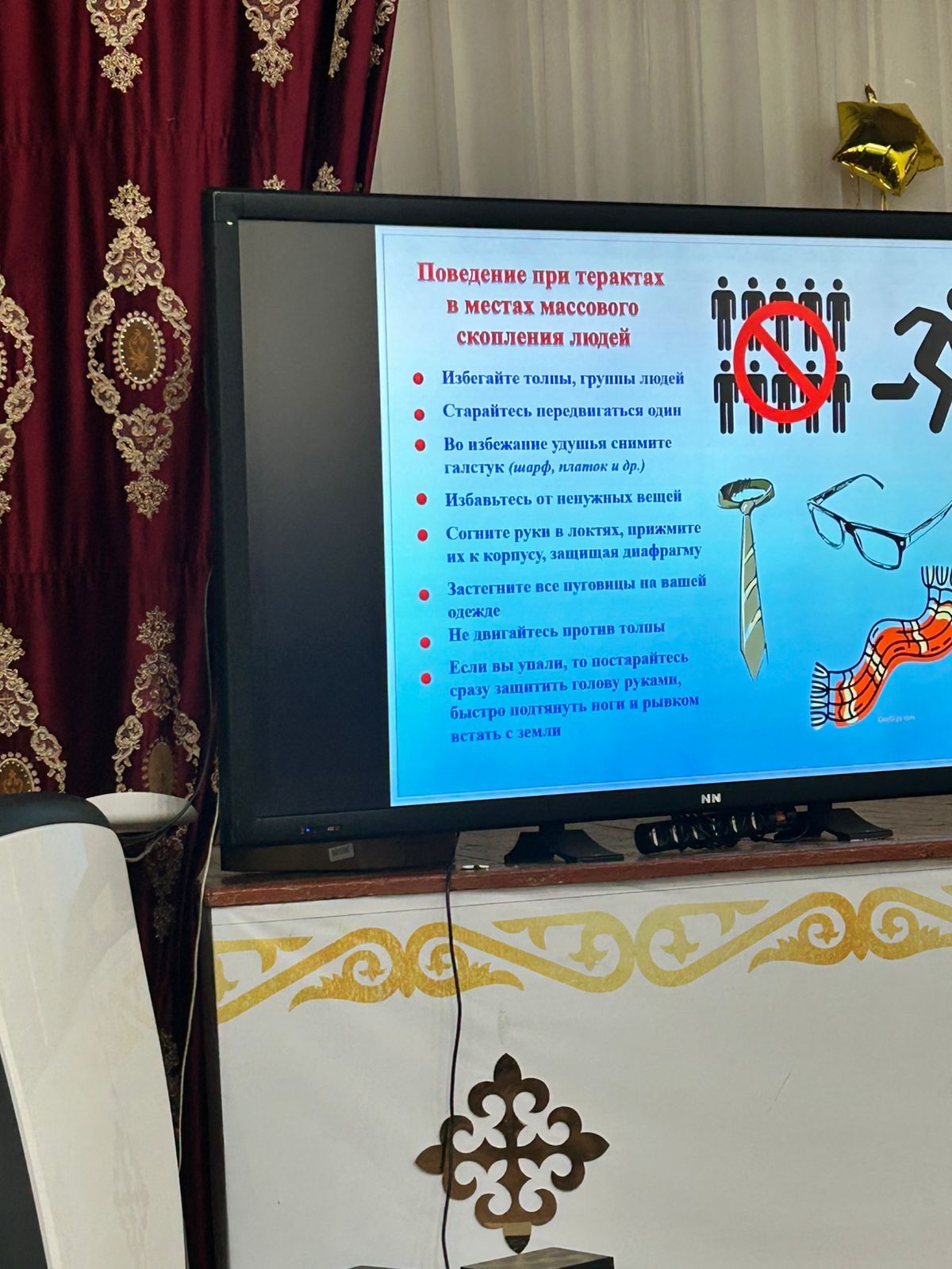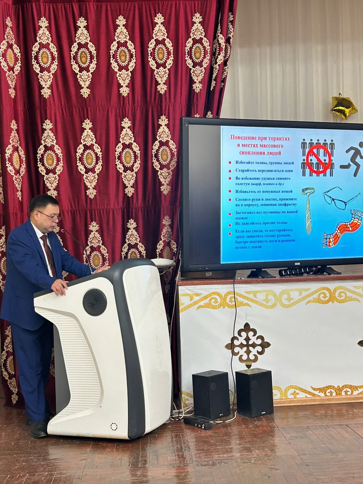 21.11.2025 жылы №5 ҚББМО КММ директордың тәрбие ісі жөніндегі орынбасары С.З.Долдаев мектептің педагогикалық және техникалық персоналына “Терроризм қаупі туындаған немесе террорлық акт жасалға…
