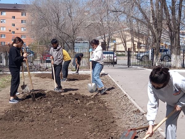 23.04.22 күні 10А сынып оқушылары "Жасыл Қазақстан" эколологиялық сауаттылық апталық аясында ағаштарды түптеп, сенбілік жасады.
