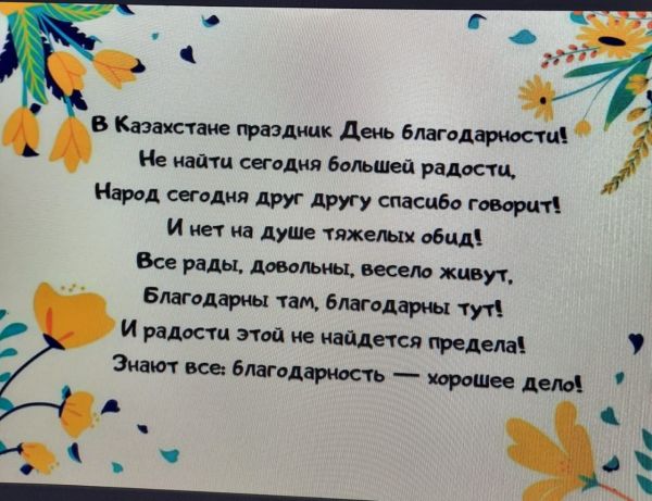 4"В" сыныбында Алғыс айту күніне арналған сынып сағаты өтті.