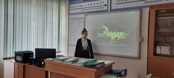 11.10.2021 ж. КММ «№5 ҚББМО» 10"Б" сыныбында "Ыбырай Алтынсаринге 180 жыл" атты сынып сағаты өтті.
