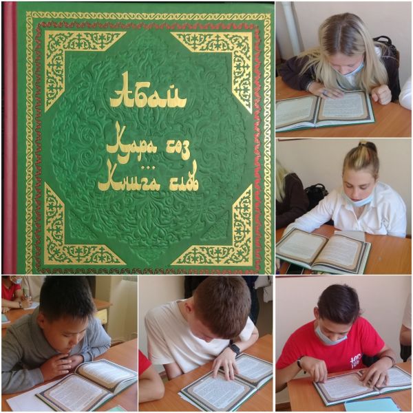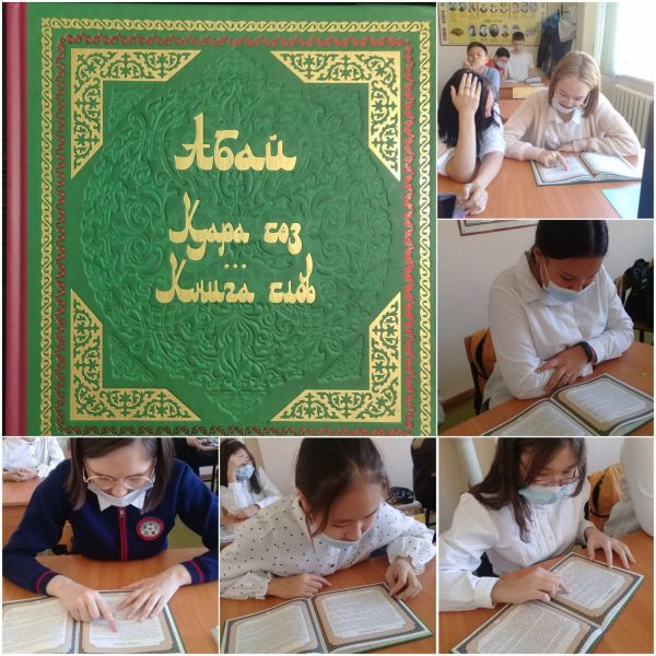 8Г сынып оқушылары ұлы қазақ ақыны Абай Құнанбайұлының «Қара сөздерін» дауыстап оқу барысында. Кезекті «Қара сөзін» оқып болған соң…
