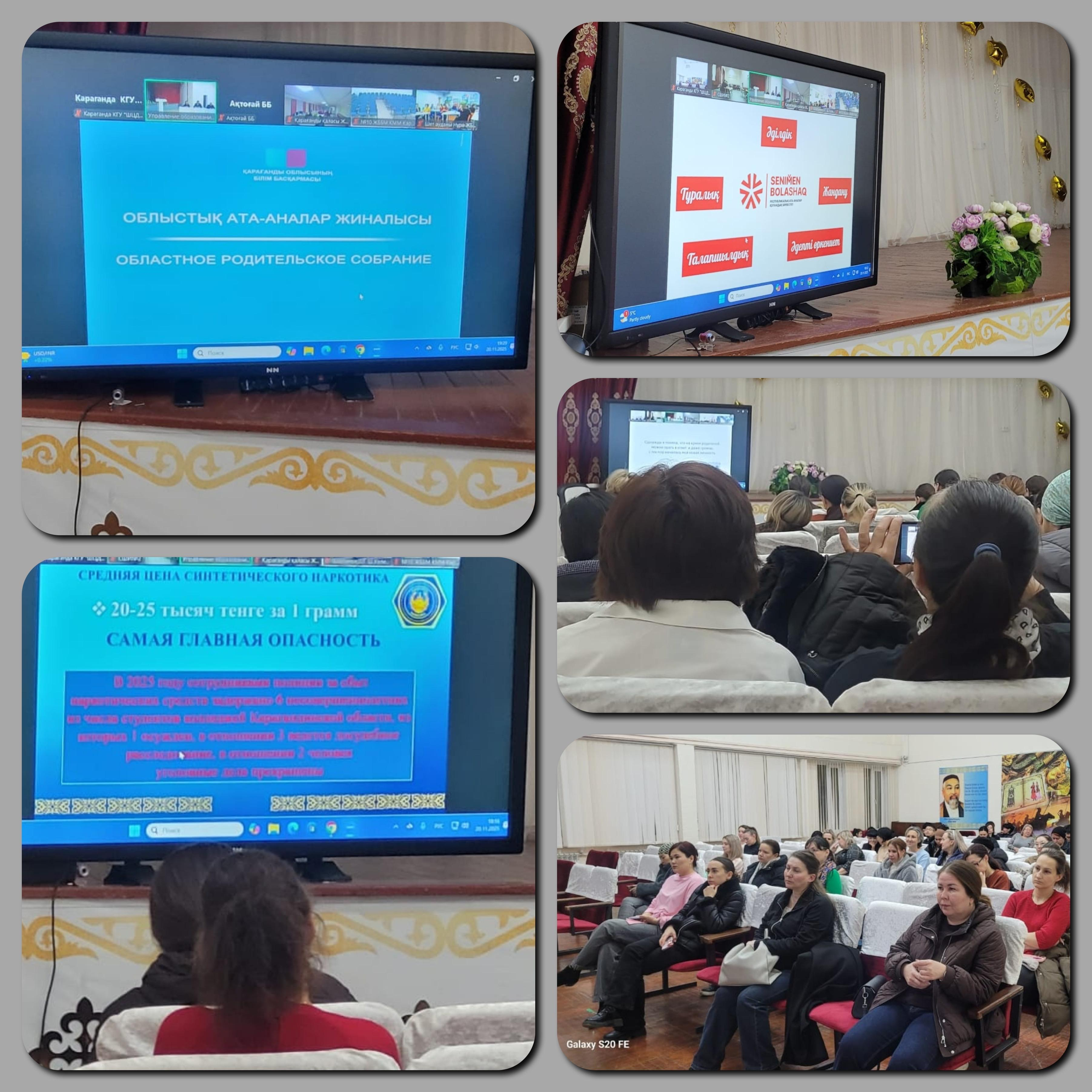 20 қараша күні сағат 18:00-де «Отбасы сағаты» жобасы аясында Қарағанды облысы білім басқармасы басшысының қатысуымен облыстық ата-аналар жиналысы өтті.