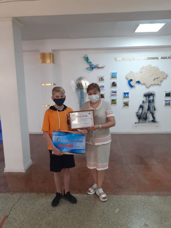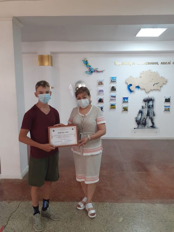 2021 жылдың 3 маусымында "№5 ҚББМО" КММ-нің кітапханашысы Кәрімова Ә.Т. оқырмандарына 4 маусым - Қазақстан республикасының мемлекеттік рәміздері күніне "Гордые символы незави…