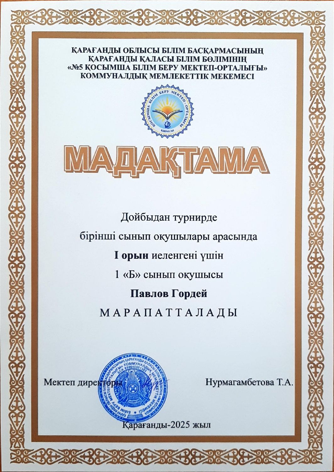«Дойбы және шахмат» үйірмесінің 1-сынып оқушылары арасында өткен турнирдің қорытындысы!