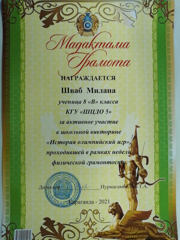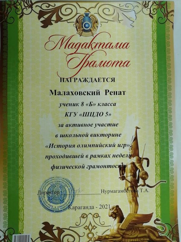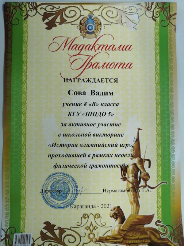 №5 ҚББМО дене шынықтыру апталығы аясында 8 сынып оқушылары арасында "Олимпиада ойындарының тарихы" атты викторина өтті, ең белсенді қатысушылар Малаховский Ренат, Кожабек Аслан, С…