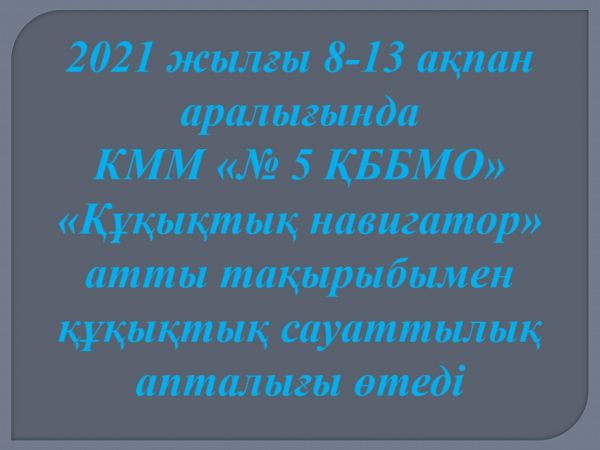 "Құқықтық навигатор" атты құқықтық сауаттылық апталығы шеңберінде 5"Б"сыныбында"Балалар құқығы туралы конвенция"тақырыбында сынып сағаты өтті.Сынып жетекшісі:…