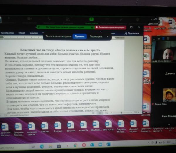 8В сыныбында «Адам қай уақытта өзіне дұшпан?» атты сынып сағаты өтті. Сынып жетекшісі: Жумабекова А.Н.