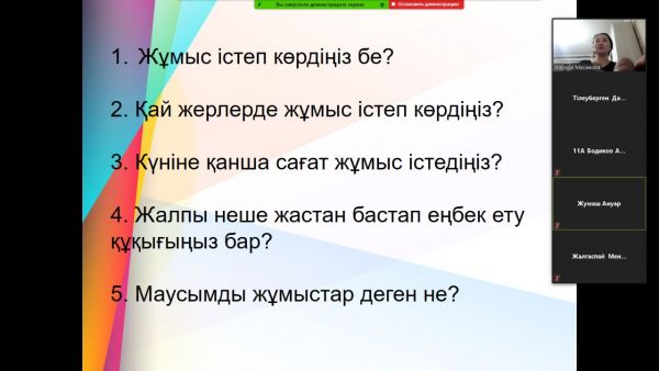 08.02.2021 ж. «Құқықтық навигатор» құқықтық сауаттылық аптасы аясында 11 А сыныбы оқушыларымен «Өз құқығыңды білесің бе?» атты сұрақ-жауап өтті.
