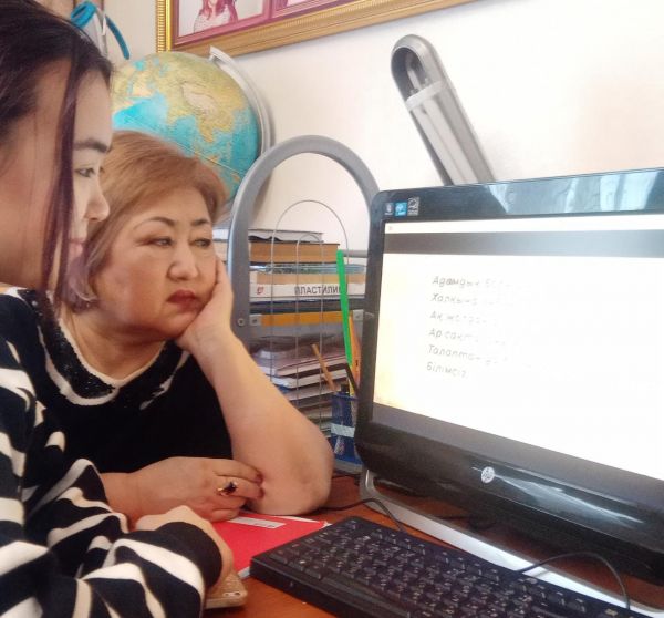 7Г сынып оқушылары «Шәкәрім өсиеті –адалдық айнасы» атты бейнесабақ қарау барысында. Сынып жетекшісі - Сейтова Г.Е.