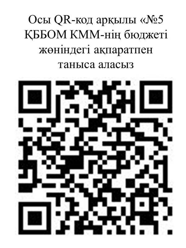Осы QR-код арқылы «№5 ҚББОМ КММ-нің бюджеті жөніндегі ақпаратпен таныса аласыздар