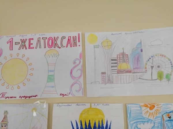 "ҚР Тұңғыш Президенті күніне" арналған сынып сағаты 3В сыныбында сынып жетекшісі Б.Ж. Бекпаева өткізді, оқушылар суреттер салды және Мустафина Диана өнерін көрсетті.
