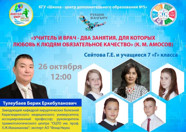 26 қазанда 7Г сынып оқушылары жəне сынып жетекшісі Сейтова Г.Е. ұйымдастыруымен "Өнегелі өмір" жобасы аясында Қарағанды мемлекеттік университетінің хирургия кафедрасының меңге…