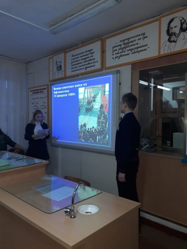 Ақпан айының 17-ші жұлдызында №5 ЖББОМ-те 8Б сыныбында "Кеңес әскерлерінің Ауған жерінен шығару күніне" арналған сынып сағаты өтті.