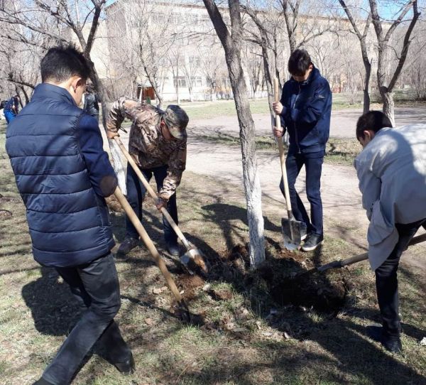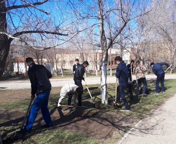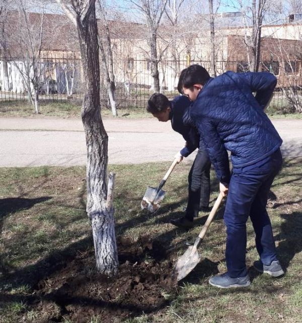 9 А сынып оқушылары сынып жетекшілері Фарида Темірбаевнамен сенбілікке шығып мектеп ауласын тазалап, көшет отырғызып, ағаштардың түбін қопсытып абаттандыру ісімен айналысты.