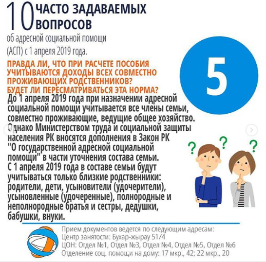 2019 жылғы 1 сәуірден бастап атаулы әлеуметтік көмек (АӘК) туралы жиі қойылатын 10 сұрақ.