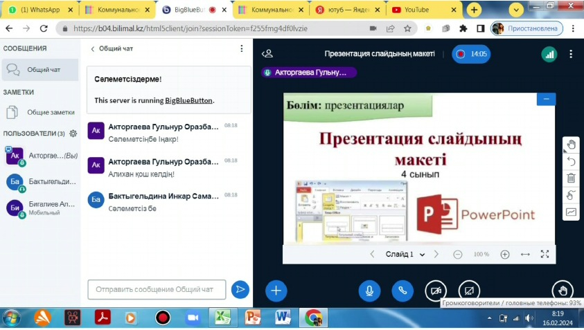 16 ақпан күні ауа-райының қолайсыздығына байланысты 4"Ә" сыныбында Цифрлық сауаттылық сабағы сабақ кестесіне сай Bilimal мұғалімдерге арналған қосымшасының қашықтықтан оқыту жүйесіндегі Ве…