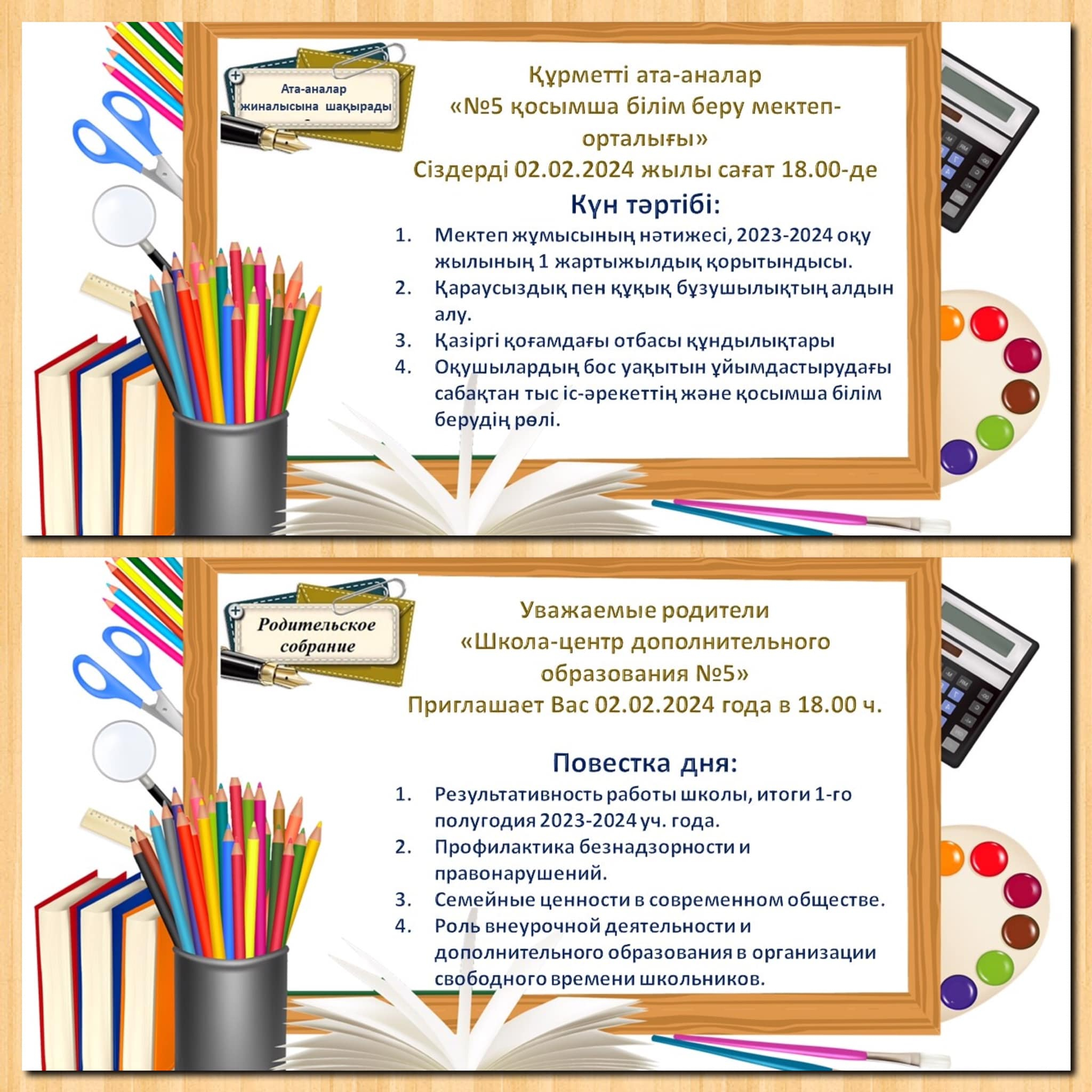 2 февраля в КГУ "ШЦДО №5" прошло общешкольное родительское собрание, на котором подвели итоги 1-го полугодия 2023-2024 учебного года.