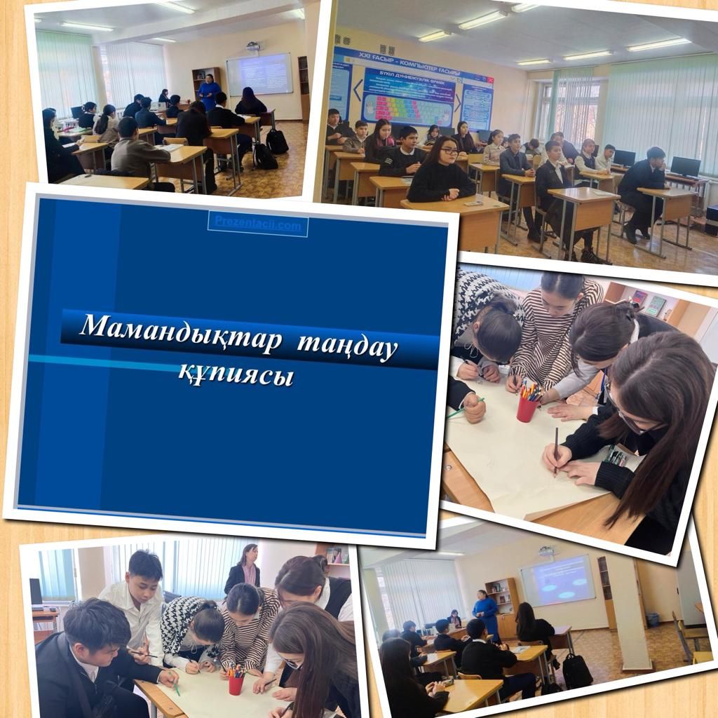 В рамках проекта "Жеткіншектің Жеті жарғысы" на тему "Профи TIME" в мире профессий в10А, 10Ә, 11А классах прошла встреча с специалистом отдела профессионального обучения и поддер…