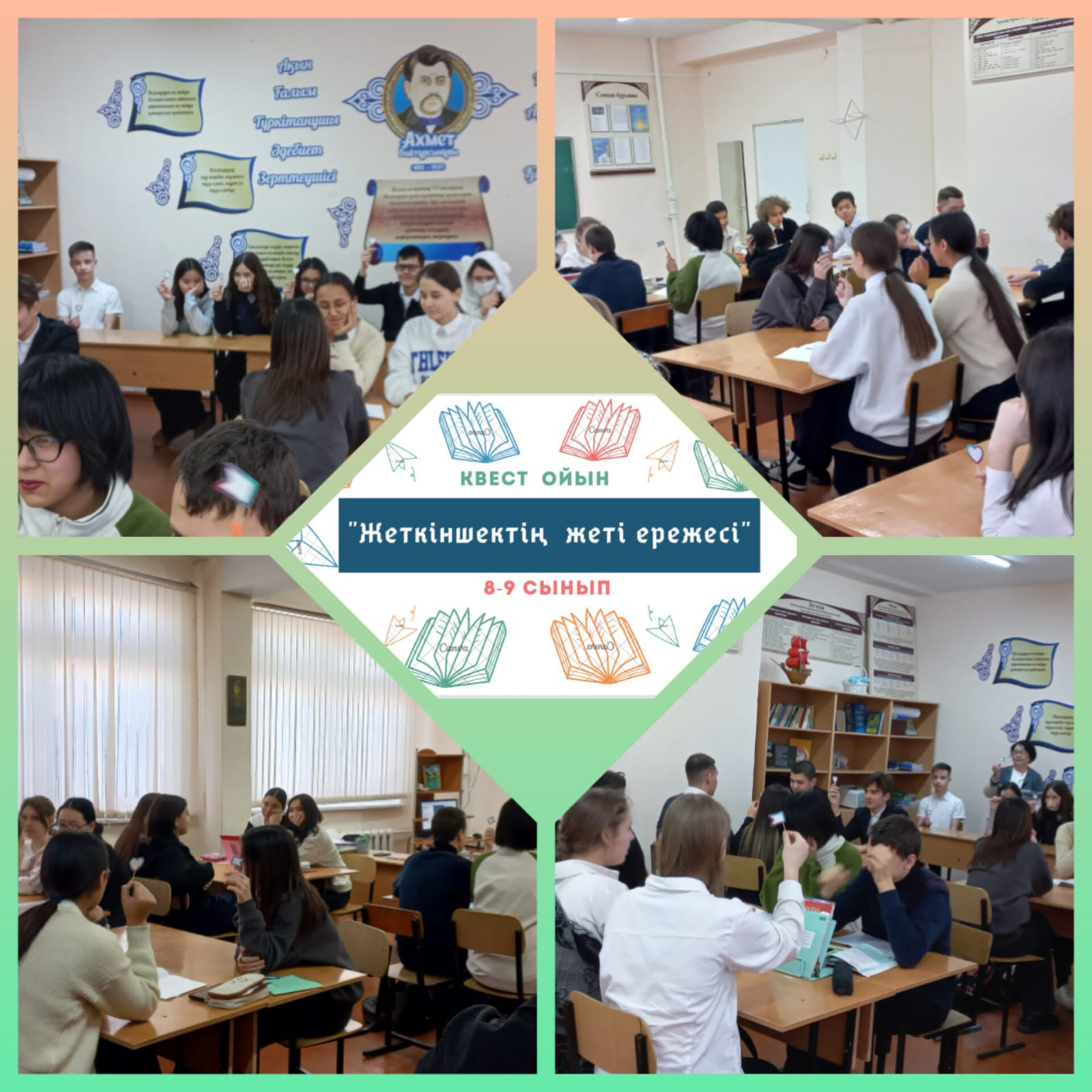 «XXl ғасыр - сауатты ұрпақ ғасыры!» атты оқу сауаттылығы апталығы аясында 8-9 сынып оқушылары арасында «Жеткіншектің жеті ережесі» атты квест ойыны өтті.