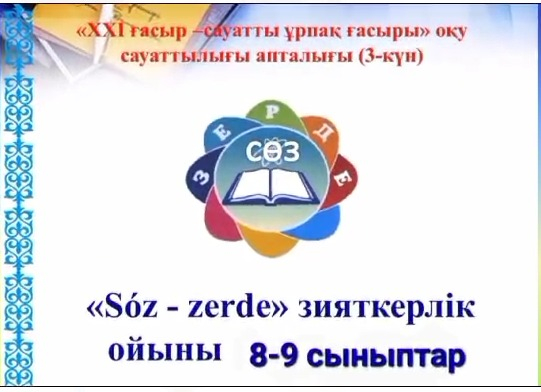 «XXl ғасыр - сауатты ұрпақ ғасыры!» атты оқу сауаттылығы апталығы аясында 8-9 сынып оқушылары арасында «Soz zerde» зияткерлік ойыны өтті.