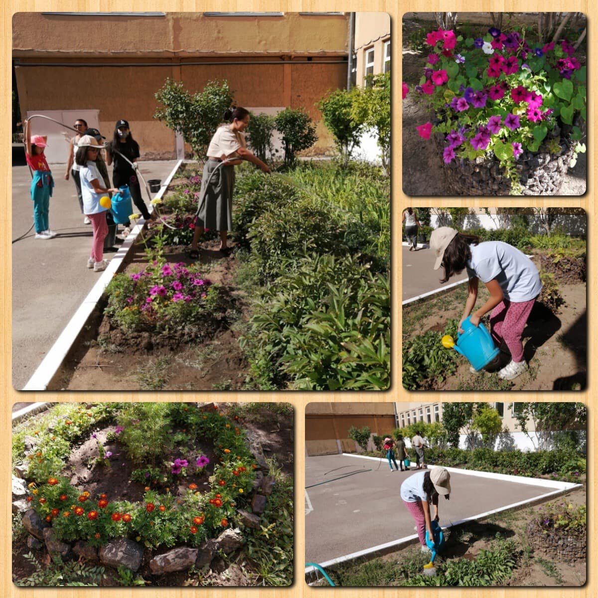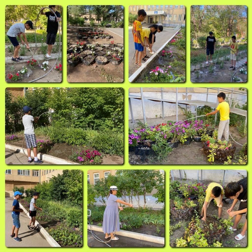 5“А” класса по утвержденному плану при школе, приняли активное участие в работе “Зеленые насаждения”.