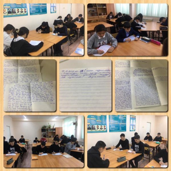 13.12.2022 учащиеся 7"А" класса в рамках празднования Дня Независимости Казахстана написали диктант "Независмость - главная ценность народа".