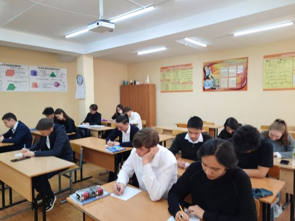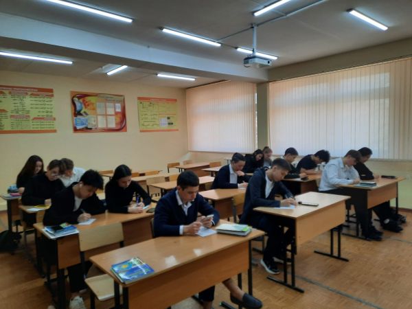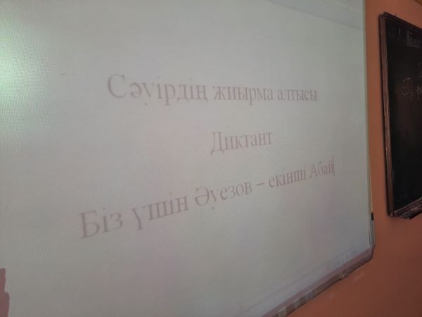 26 апреля в соответствии с планом мероприятий школы учащиеся 11А класса к 125-летнему юбилею писателя М. Ауэзова написали диктант на тему: "Біз үшін Әуезов - екінші Абай".