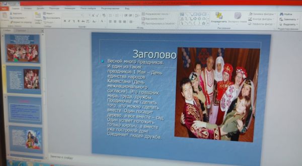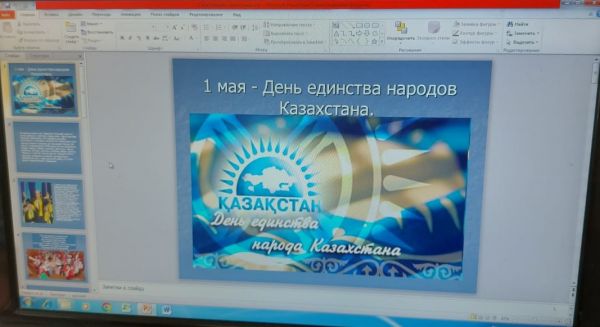 Учащиеся 10"А"класса в преддверии единства народов Казахстана 1 мая провели воспитательный час "Единство и согласие в Казахстане".