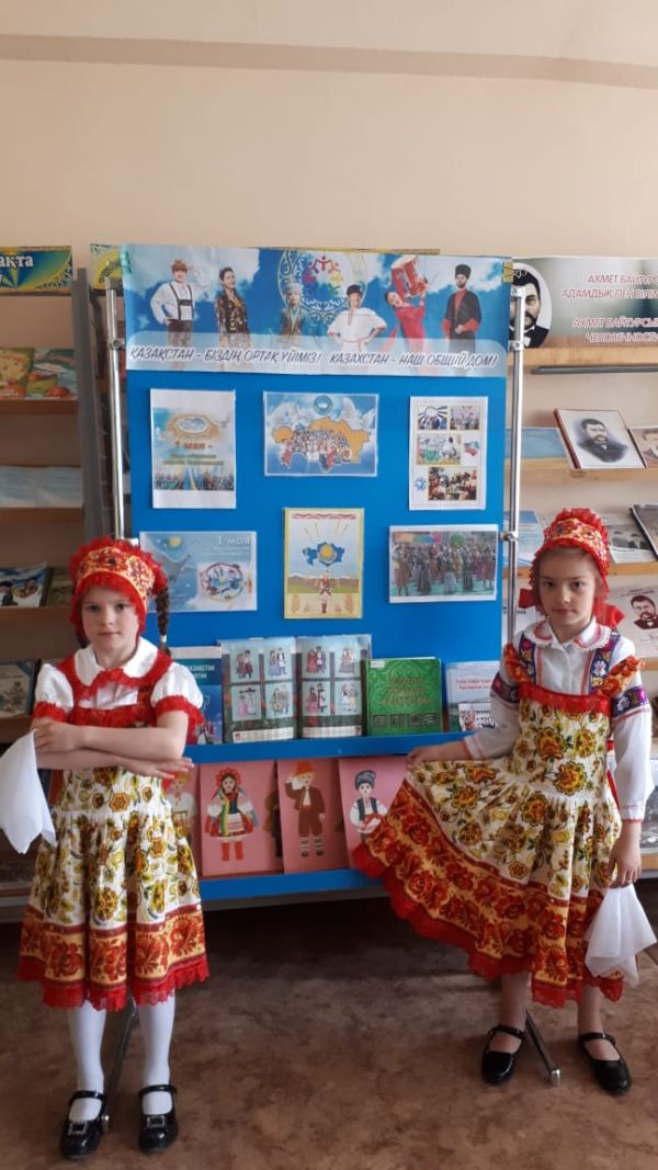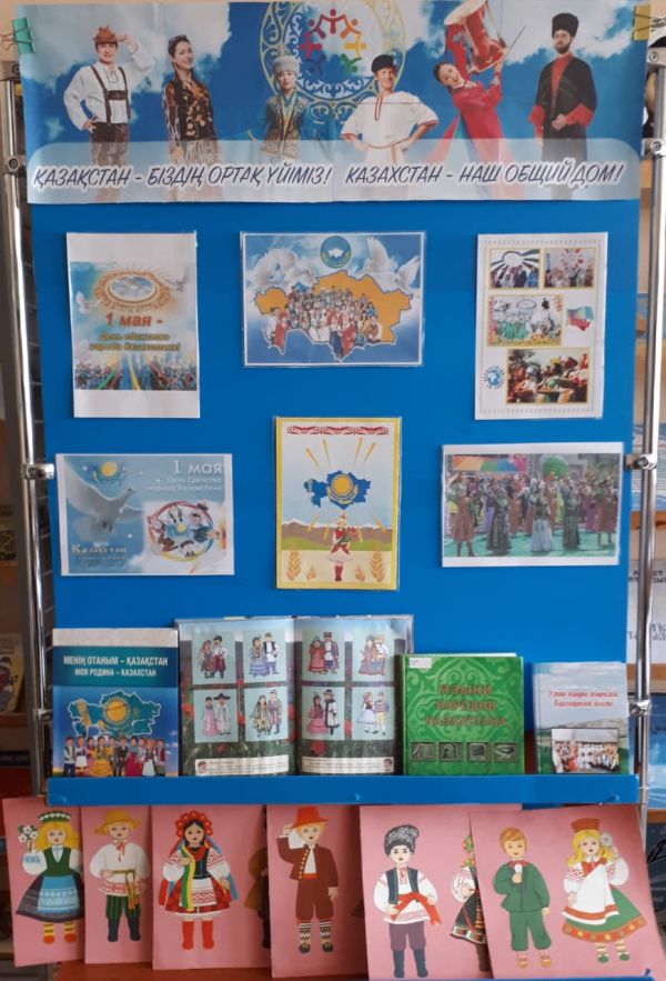 29 апреля 2022 года ко Дню 1мая день единства народов Казахстана библиотекари ШЦДО №5 Г.О. Каппасова, А.Т. Каримова предлагают читателям тематическую выставку "Казахстан - наш общий дом".