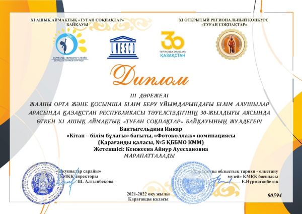 Ученики ШЦДО №5 участвовали в XI открытом региональном конкурсе виртуальных экскурсий «Туған соқпақтар» в рамках программы «Рухани жаңғыру» и были награждены дипломами по раз…
