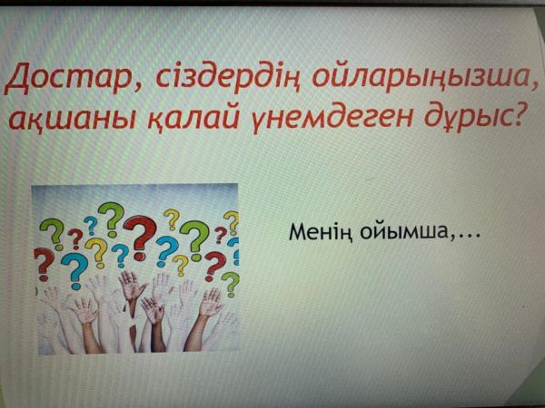 В рамках недели финансовой грамотности в 5 Б классе прошел классный час на тему « Урок финансовой грамотности». Классный руководитель: Жаканова Д.А