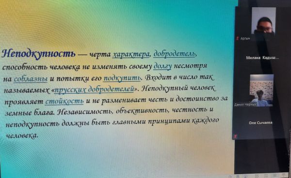 В 7Г классе прошёл классный час на тему "Честность и неподкупность-норма поведения". Классный руководитель - Сейтова Г.Е.