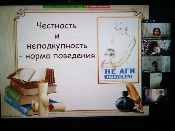 В 9"Б" классе проведен классный час на тему " Честность и неподкупность - норма поведения".