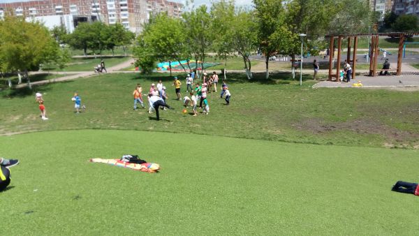 Ребята с пришкольного лагеря ходили на прогулку в Сквер по улице Республики. Они играли в игры, катались на роликах, рассказывали разные интересные истории из жизни