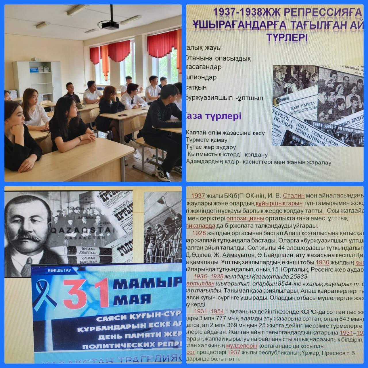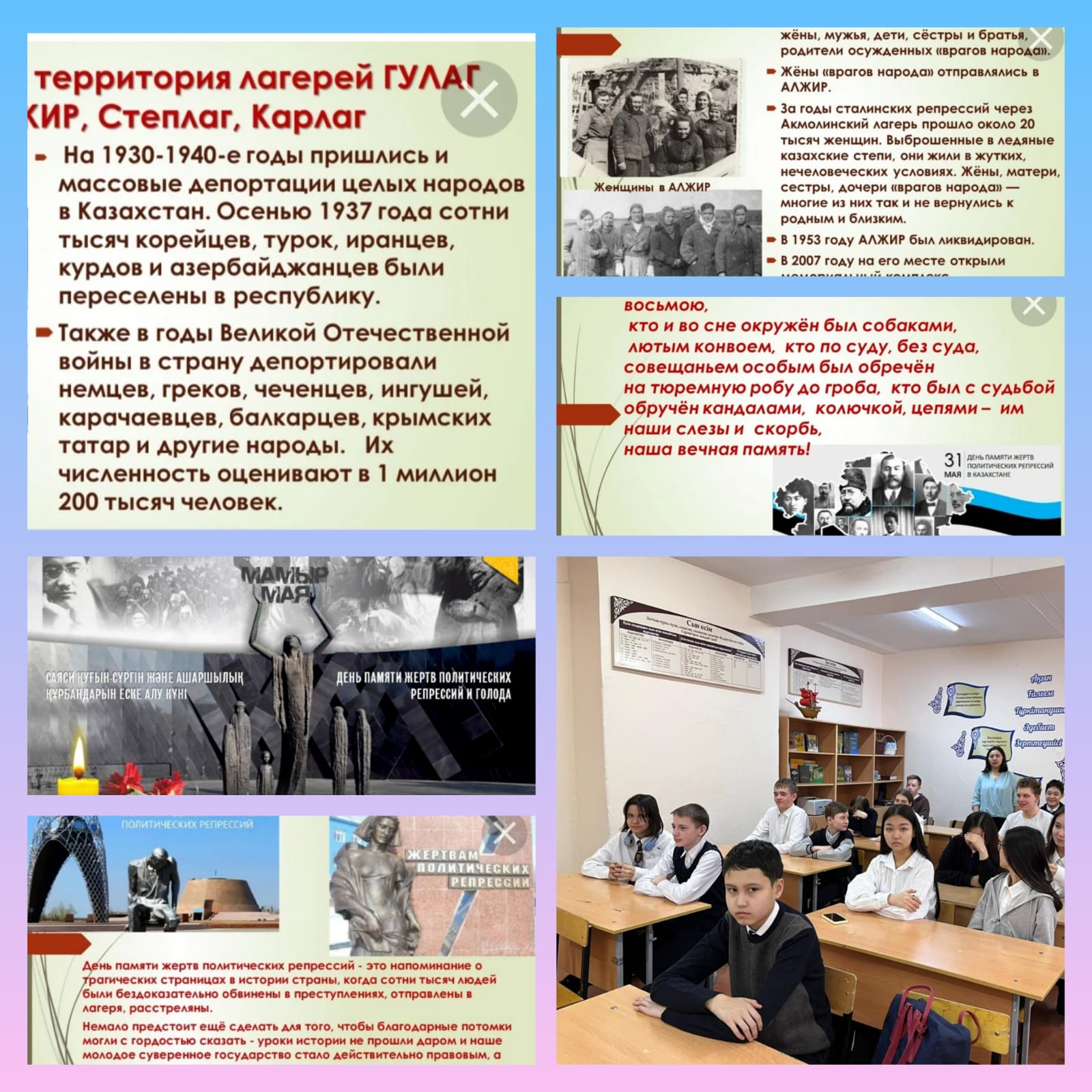 В 9А классе проведен классный час на тему: “31 мая День памяти жертв политических репрессий”.