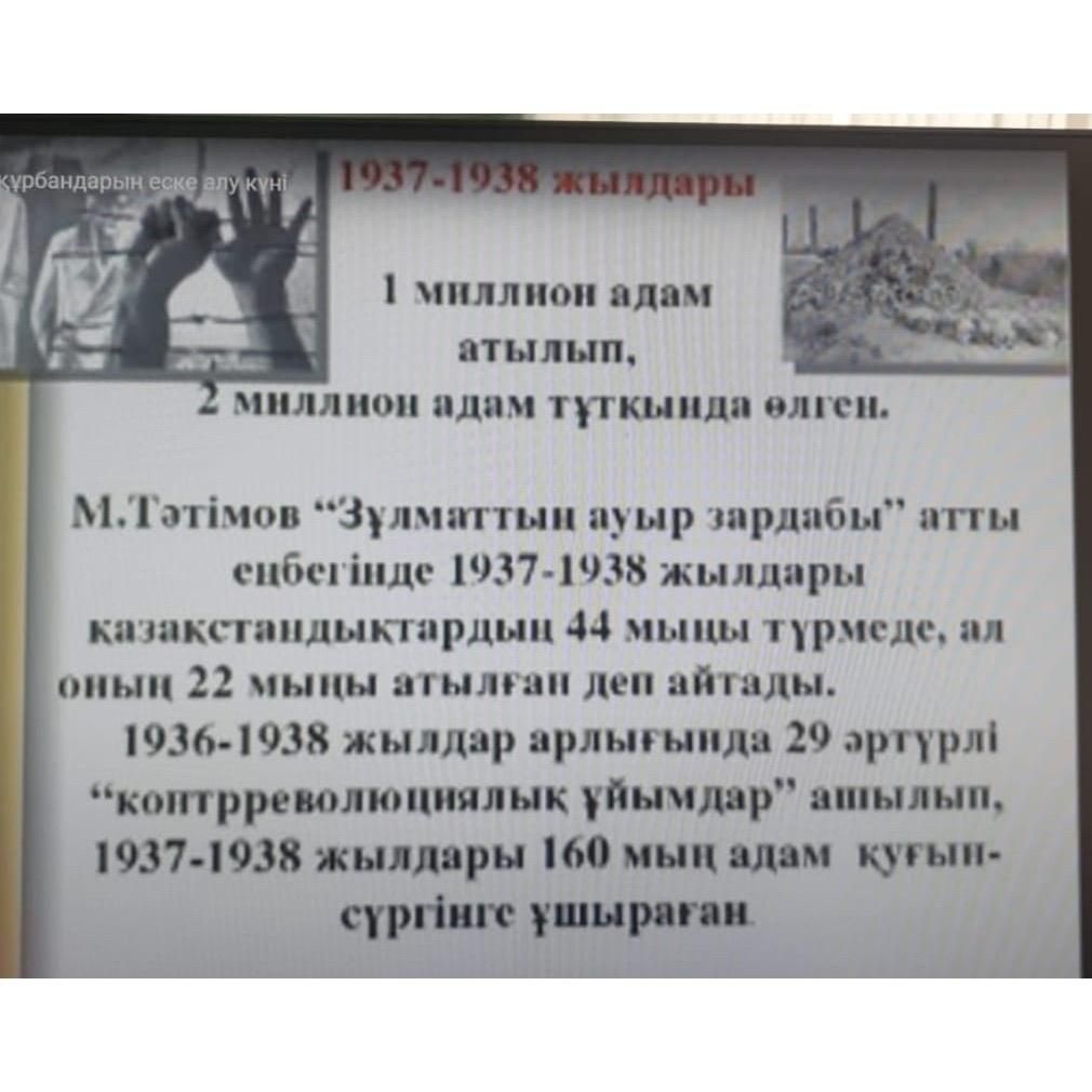 "31 мая - День памяти жертв политических репрессий" в 6"Ә" классе был проведен классный час.