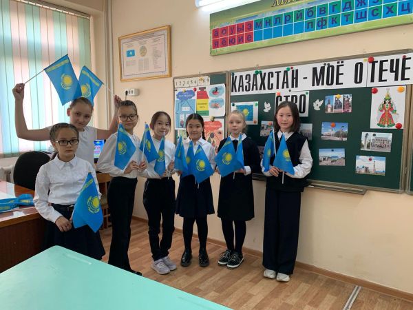 В 4«Б» классе прошёл классный час посвящённый Дню республики Казахстан на тему: «Казахстан - моё Отечество»