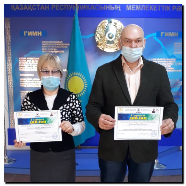 Ы.Алтынсариның 180 жылдығына арналған республикалық олимпиаданың жеңімпаздары, тарих пәнінің мұғалімі Жарликов Игорь Юрьевич, география пәнінің мұғалімі Жарликова Зульфия Мерсултановна.
