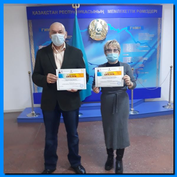 Қазақстан Республикасы Тәуелсіздігінің 30 жылдығына арналған республикалық олимпиада жеңімпаздары география пәнінің мұғалімі Жарликова Зульфия Мерсултановна және тарих пәнінің мұғалімі Жарл…