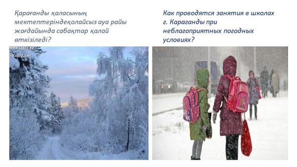 Как проводятся занятия в школах г. Караганды при неблагоприятных погодных условиях?