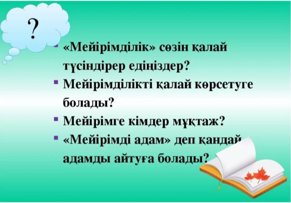 16 ноября в 11“Ә” классе был прведен классный час на тему “День доброты”.