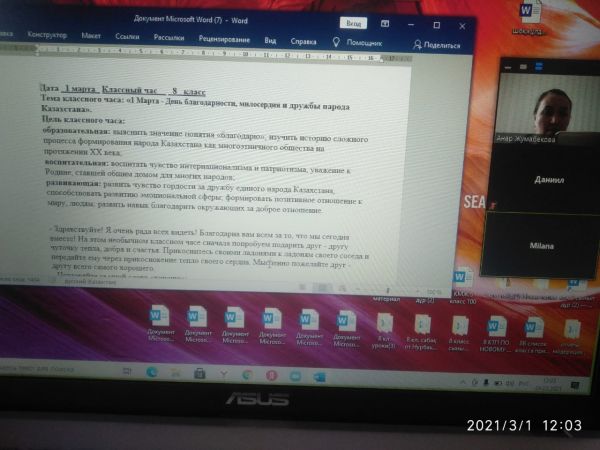 В 10 “ә” классе был проведен классный час на тему “ 1 марта - День благодарности” Классный руководитель: Сабит Ж.А.