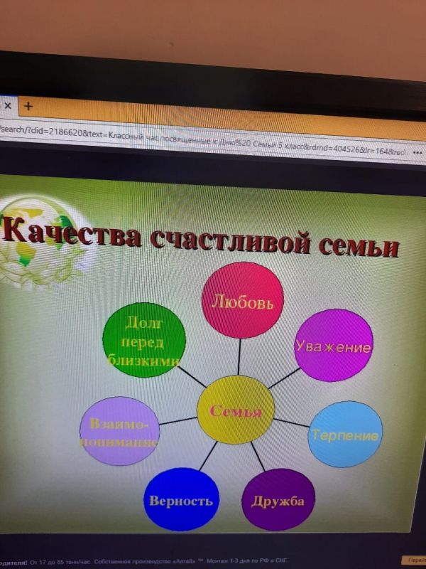 "Отбасы және отбасылық құндылықтар" тақырыбында сынып сағаты