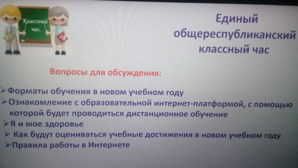21 августа в онлайн режиме проведен Единый Республиканский классный час.