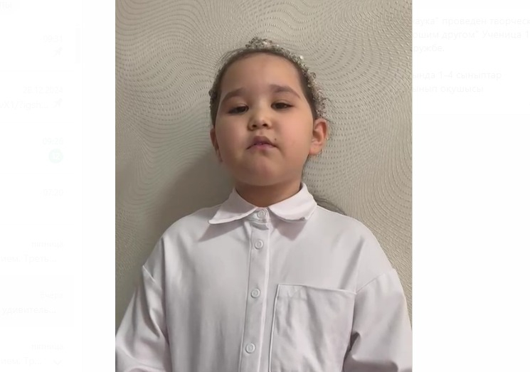 24 января 2025 года в рамках проекта «Кеттік, кітап оқимыз!» 20-минутное чтение Садвакасова Еркежан ученица 2«Ә» класса прочитала отрывок из сказки «Колобок».
