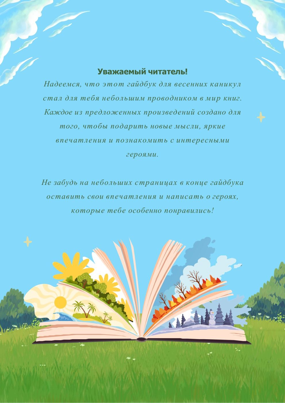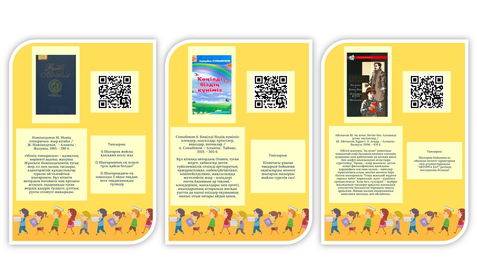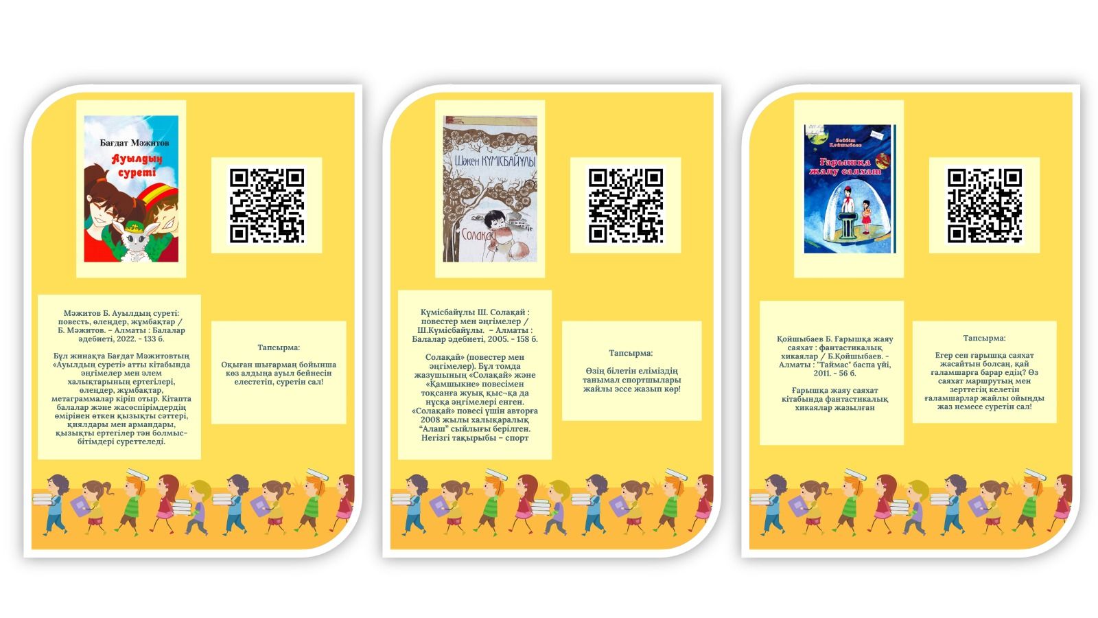 Мектеп оқушыларының көктемгі демалыс кезінде ұйымдастырылатын іс-шараларға арналған әдебиеттер тізімдерін ұсынады.