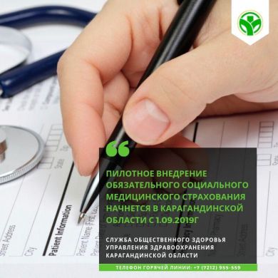 Пилотное внедрение обязательного социального медицинского страхования начнется в Карагандинской области с 1.09.2019г.